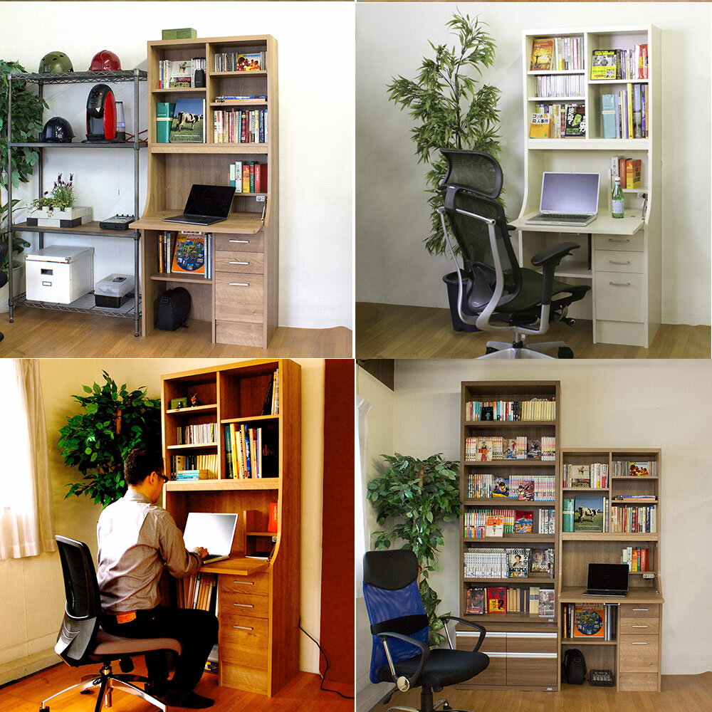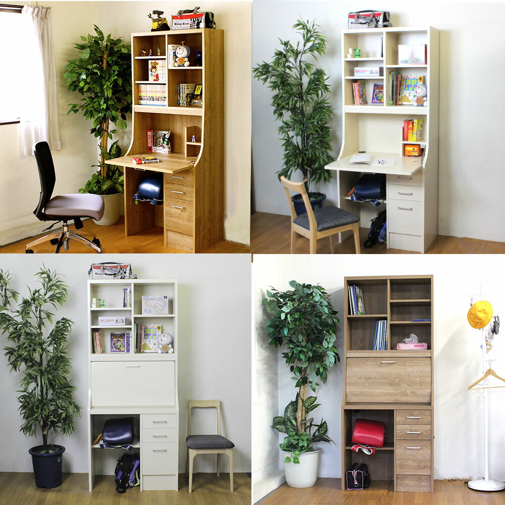 ライティングデスク 学習机 完成品 当店オリジナル 北欧ヴィンテージ風 幅75×奥行42.5×高さ178cm ライティングビューロー リビング学種 日本製 折りたたみ 省スペース ライティング デスク ブラウン 白木目 北欧 子供用 子供部屋 パソコン 棚付き 収納
